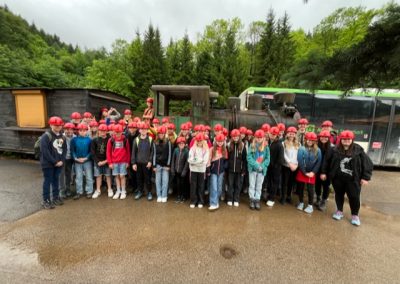 Am 10. Juni war es endlich so weit: Die 3. Klassen starteten voller Vorfreude in ihre lang ersehnte Erlebniswoche. Den ersten Stopp machte die motivierte Reisegruppe am Erzberg, wo die Schüler*innen mit Helmen ausgestattet das Schaubergwerk erkundeten. Natürlich durfte auch eine Fahrt mit dem Hauly nicht fehlen, die uns zu den tollsten Aussichtspunkten am Berg führte. Danach ging es weiter in Richtung Flachau. Im schönen Jugendsporthotel Hanneshof angekommen, wurden die Zimmer bezogen und die Sportanlagen des Hotels ausprobiert. Am Dienstag führte uns die Reise nach Salzburg, wo wir zuerst den Zoo und dann die Wasserspiele Hellbrunn besuchten. Nass waren nach diesem Programmpunkt definitiv alle – wobei es fraglich war, ob daran der Regen oder die versteckten Wasserspiele im Schlosspark verantwortlich waren! J Auch am Mittwoch brachte uns unser Reisebus wieder in die schöne Hauptstadt. Nach dem Besuch in der beeindruckenden Red Bull Arena, lernten die Schüler*innen in einer Stadtführung interessante Informationen über die Salzburger Innenstadt. Zum Kulturgut dieses Bundeslandes zählt auch die Eisriesenwelt in Werfen, welche am Donnerstag auf unserem Programm stand. Für den anstrengenden Aufstieg zur größten Eishöhle der Welt wurden die tapferen Schüler*innen mit einem atemberaubenden Anblick belohnt. Im Anschluss wurde es lustig: zuerst durften sich die Jugendlichen im Freizeitpark „Luckyflitzer“ bei lustigen Attraktionen austoben, danach veranstalteten wir eine Spiele – Olympiade am Hanneshof. Auf der Heimreise am Freitag machten wir einen letzten Stopp in Friesach, wo seit einigen Jahren mit mittelalterlichen Methoden eine Burg gebaut wird. Müde und zufrieden erreichten wir schließlich am Nachmittag die Mittelschule, wo die tolle Woche mit braven Schüler*innen (und Lehrer*innen J) endete.