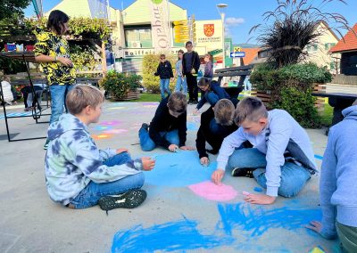 Am 20. September 2024 arbeiteten die ersten Klassen der Mittelschule Sankt Stefan ob Stainz am Projekt „Blühende Straßen“. Ziel war, den SchülerInnen bewusst zu machen, dass die Verkehrsfläche nicht nur für Fahrzeuge, sondern auch für Kinder und ihren Schulweg gedacht ist. Im Zuge des Projekts galt es, den Hauptplatz in bunten Farben erstrahlen zu lassen.