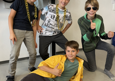 Im Deutschunterricht der 2. Klassen wurde das Thema „Satzglieder“ auf ganz besondere Weise vermittelt: Die Kinder erstellten in Kleingruppen einen Rap! Die selbstgeschriebenen Liedtexte beinhalteten wichtige Informationen über Subjekt, Prädikat und Co. Dabei setzten die Schüler und Schülerinnen ihre Grammatikkenntnisse kreativ um und brachten Schwung in den Unterricht. In Live-Vorführungen präsentierten sie ihre selbst erstellten Rapsongs – in passenden und lustigen Kostümen, die für viele Lacher sorgten. So macht das Lernen richtig Spaß! Dank der kreativen Gestaltung haben die Schülerinnen und Schüler das Thema spielerisch vertieft und bewiesen, dass Grammatik alles andere als trocken sein muss.