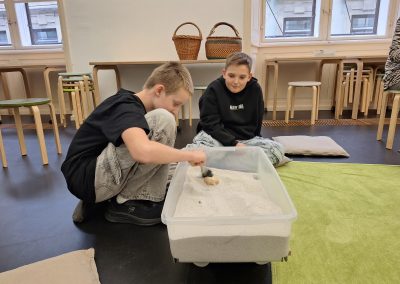 Zurück in die Vergangenheit. Die beiden dritten Klassen der Mittelschule St. Stefan ob Stainz reisen durch die Zeit. Genauer gesagt: Sie reisen im Grazer Joanneum durch die Erdgeschichte. Beginnend beim Urknall führt diese abenteuerliche Zeitreise durch die verschiedenen Erdzeitalter – über das Urmeer hin zur Gegenwart. Die SchülerInnen bekommen dabei eindrucksvoll demonstriert, wie sehr sich unser aller Heimatplanet im Laufe der Jahrmillionen zu verändern vermochte. Unglaubliche alte und hinsichtlich Dimension überaus imposante Fossilien konnten die SchülerInnen während der 90-minütigen Erlebnistour unter anderem begutachten. Während des Workshops griffen diese dann selbst zum Archäologen-Werkzeug, puddelten fleißig im Sand und brachten dank akribischer Ausgrabungsarbeit verschiedene Fossilien zum Vorschein. Es war dies freilich ein Museumsbesuch der etwas anderen, aber äußerst aufregenden Art. Die SchülerInnen waren allesamt begeistert – enormer Lerneffekt inklusive.