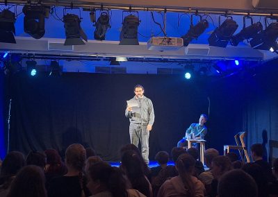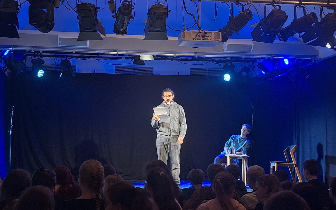 Das diesjährige Kukuk-Festival stand in der Mittelschule St. Stefan ob Stainz ganz im Zeichen von Poetry-Slam – ein literarischer Wettbewerb, bei dem selbstverfasste Texte präsentiert werden. Es war dies ein gänzlich unbekannter Begriff für einen Großteil der SchülerInnen der MS St. Stefan ob Stainz. Das sollte sich jedoch rasch ändern. Denn die hochkarätig besetzte Poetry-Slam-Delegation wusste sofort zu überzeugen. Yannick Steinkellner, glühender Sturm Graz-Anhänger und einer der bedeutendsten Vertreter im deutschsprachigen Raum, sowie Muhammed Dumanli, Österreichs U20-Meister im Poetry-Slam, brachten den SchülerInnen zunächst in ihrem Workshop die Basics näher. Dabei konnten die TeilnehmerInnen ebenfalls ihre ersten Slam-Texte verfassen. Tags darauf lieferte das regelrechte Star-Ensemble in diesem Genre einen überragenden Auftritt im Stiegler-Haus ab. Eine ordentliche Portion Humor, Selbstironie und Geschichten aus dem Leben (von Schispringern, Takern 1 und Takern 2 bis hin zum Besuch einer Döner-Bude) sorgten einerseits für Gelächter, andererseits wurde man ebenfalls zum Nachdenken angeregt. Sowohl Workshop als auch der anschließende Auftritt bleiben als echte Erfolgs-Story in Erinnerung.