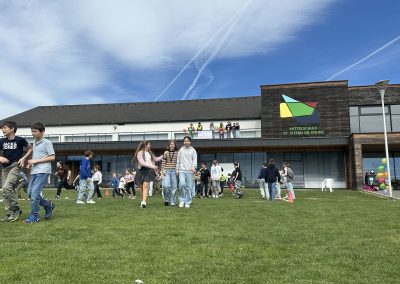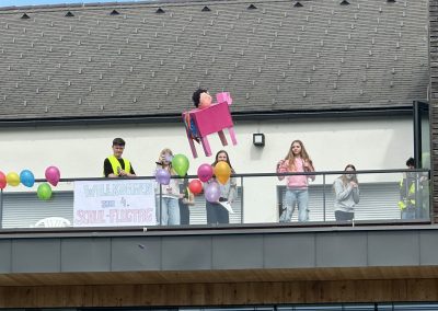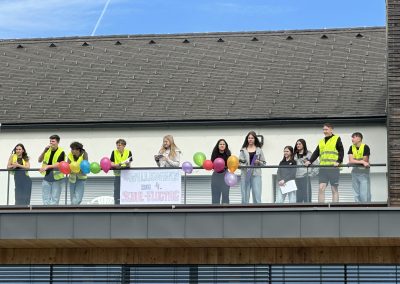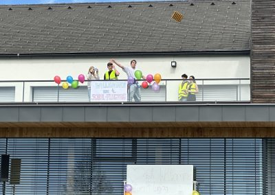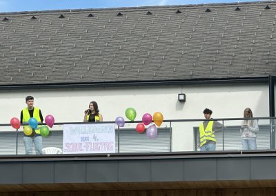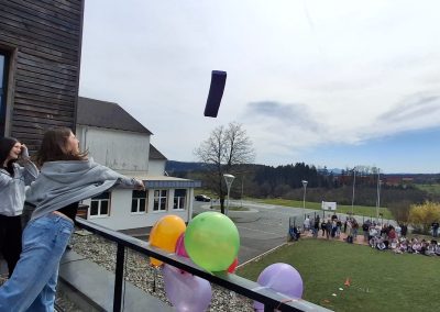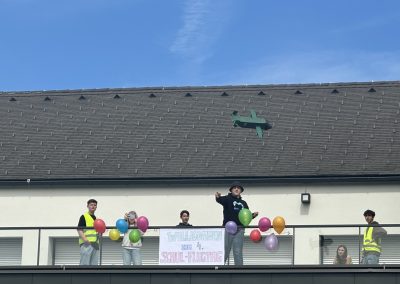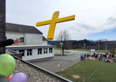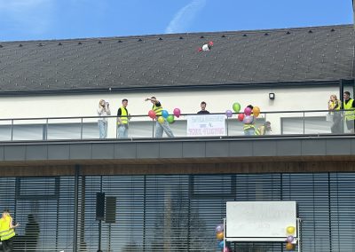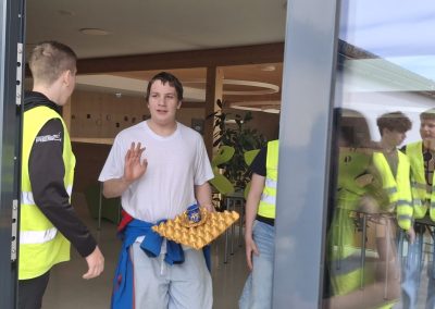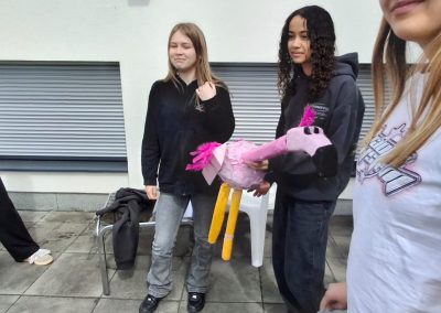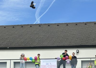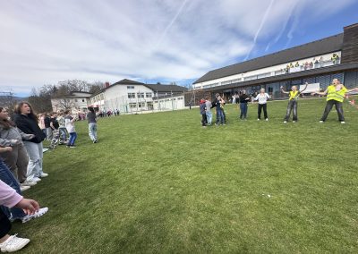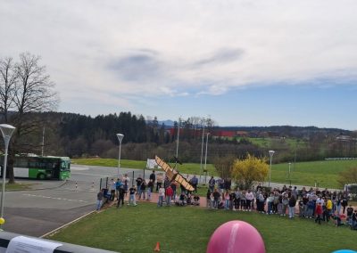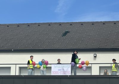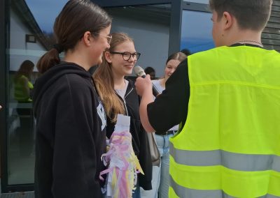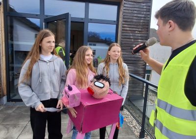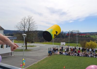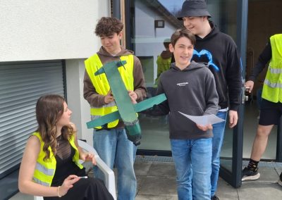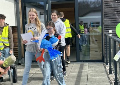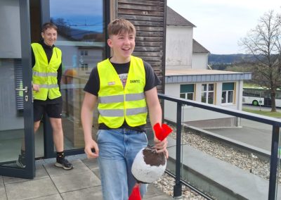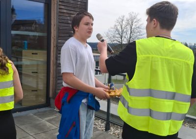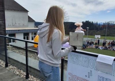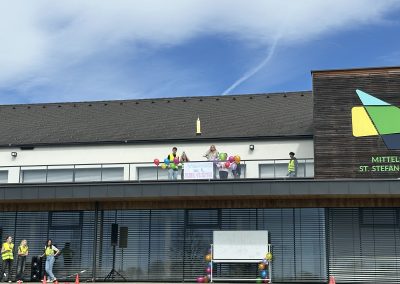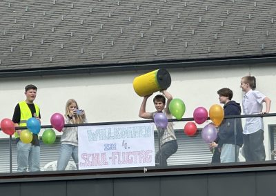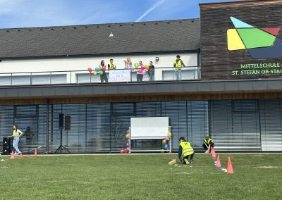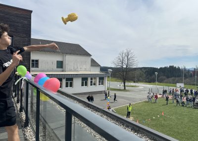 Die Vorfreude auf das alljährlich im Schulhof stattfindende Event war bereits seit langem spürbar. Abermals durften die dritten und vierten Klassen sowohl ihre Geschicklichkeit im Bau der unterschiedlichsten und skurrilsten Flugobjekte wie auch ihren grandiosen Einfallsreichtum unter Beweis stellen. Wie bereits in den vergangenen Jahren gelang dies äußerst eindrucksvoll. Fantastisch moderiert von Dominik Czerniecki (4a), bereits ein alter Hase in diesem Geschäft, avancierte der Flugtag 2025 einmal mehr zu einem spektakulären Ereignis, dem nicht nur die gesamte Mittelschule, sondern auch alle SchülerInnen der Volksschule St. Stefan frenetisch beiwohnten. Für eine fantastische Stimmung war vor den Augen des St. Stefaner Bürgermeisters und Gemeindepfarrers also gesorgt. Neben Musik gab es kurzerhand ebenfalls spontane Tanzeinlagen von SchülerInnen beider Schulstufen und – wohlgemerkt – einigen LehrerInnen.