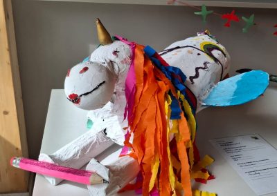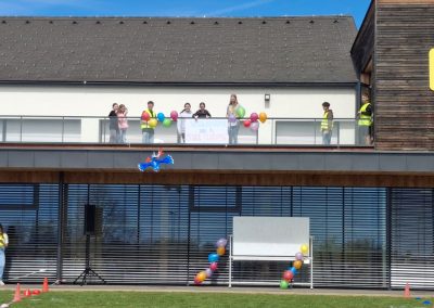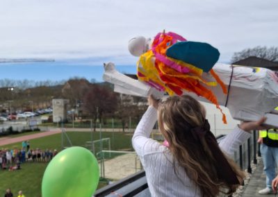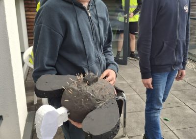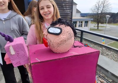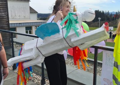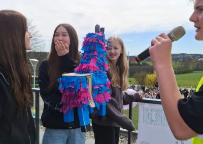 Zu bestaunen gab es viel: So ging beispielsweise eine mit Süßigkeiten gefüllte Piñata an den Start. Von fliegenden Einhörnern, Taylor Swift, weltbekannten Gebäuden, einem imposanten Wikinger-Helm über Spongebob Schwammkopf war alles dabei, was das Flugtag-Herz begehrt. Und noch vieles mehr. Letzten Endes fanden alle Flugobjekte wieder den Weg zurück auf den Boden – manche eben früher, andere etwas später. Somit fand das von Mag. Silvia Aichholzer mit SchülerInnen der vierten Klassen organsierte und rundum gelungene Event irgendwann auch ein Ende. Zu den Siegern des Flugtages 2025 durften sich knapp, aber wohlverdient Felix Nestl und Stefan Lesky (beide 3a) mit ihrem „Flying Sponge“ küren. Dabei staubten sie im Zuge der Siegerehrung auch noch einen würdigen Pokal und einen exquisiten Geschenkekorb ab.
