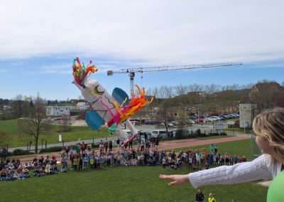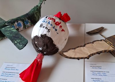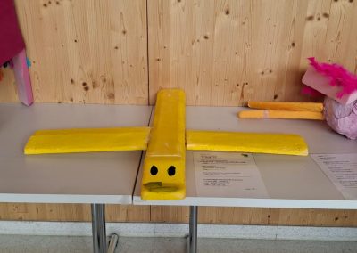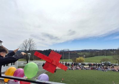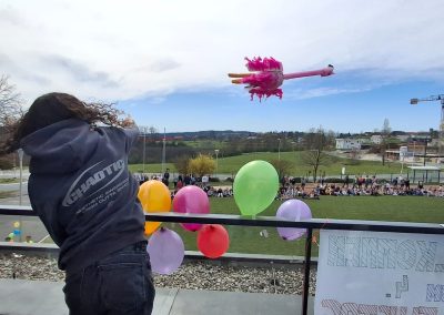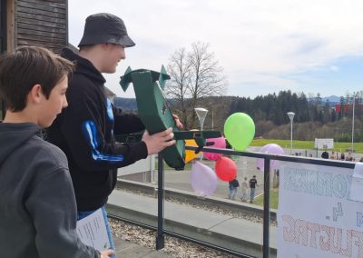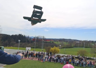 Insgesamt 24 originelle Flugobjekt gingen dann an den Start. Bewertet wurden von der aus dem Lehrkörper bestehenden Jury zwei Kategorien: Kreativität und Flugeigenschaften. Eine gewisse Anspannung und freudige Erwartung machten sich breit, als es bei Kaiserwetter endlich hieß: Ready for take-off! Dem Start jeden Flugobjektes gingen schließlich lange Planungen und Konstruktionen voraus. Doch die Mühen haben sich neuerlich für alle TeilnehmerInnen mehr als gelohnt.