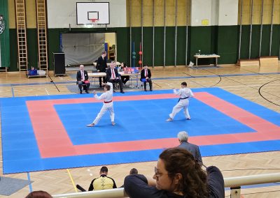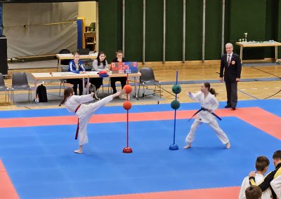 Die SchülerInnen traten – getrennt nach Altersklasse und Geschlecht – in drei verschiedenen Techniken an: dem „Kata Einzel“, den „Kumite-Techniken an den Bällen“ sowie im „Begrenzten Freikampf“. Jeweils drei Wertungsrichter bestimmten in den Duellen nach einem definierten Ablauf und den traditionellen Ritualen nun über Sieg oder Niederlage. Bei toller Stimmung in der Halle konnten die zahlreichen ZuschauerInnen nun eine Vielzahl äußerst spannender Wettkämpfe bestaunen – mit einem phänomenalen Ausgang für die Mittelschule St. Stefan ob Stainz. Die Siegerehrung vollzog niemand Geringerer als der ehemalige Präsident des Steirischen Karateverbandes und Trainer der MS St. Stefan ob Stainz, Thomas Koller.