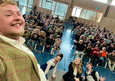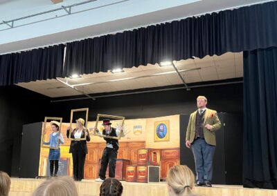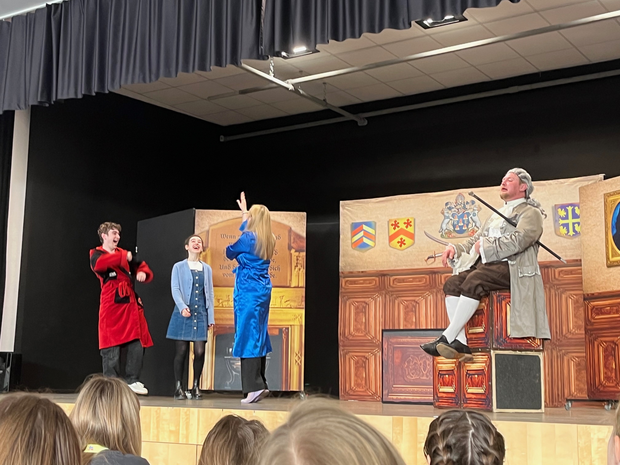 Wie in den vergangenen Jahren überzeugte die Theatergruppe mit witzigen Dialogen, lebendigen Rollen und viel Energie auf der Bühne. Besonders gefeiert wurde der Charakter Washington, der als typisches „Fortnite-Kiddy“ dargestellt wurde. Mit seinen überdrehten Gamer-Sprüchen und lustigen Aktionen brachte er die SchülerInnen immer wieder zum Lachen und avancierte rasch zum Publikumsliebling. Außerdem bedurfte es erstklassiger Englischkenntnisse, um einen Text übersetzen und dadurch ein Rätsel lesen zu können – ein Leichtes für die SchülerInnen aus St. Stefan ob Stainz
