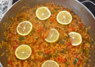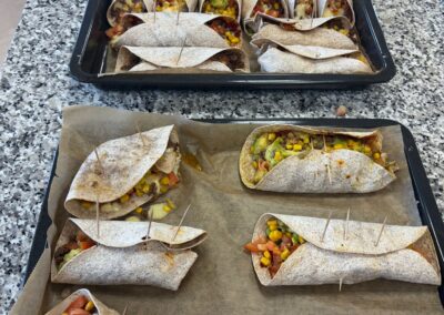 Als Vorspeise standen Burritos auf dem Programm, gefolgt von einer klassischen Paella als Hauptspeise. Zum süßen Abschluss wurde ein frischer Obstsalat zubereitet. Begleitet von spanischer Musik wurde nicht nur gemeinsam gekocht, sondern anschließend auch gemeinsam gegessen und genossen.