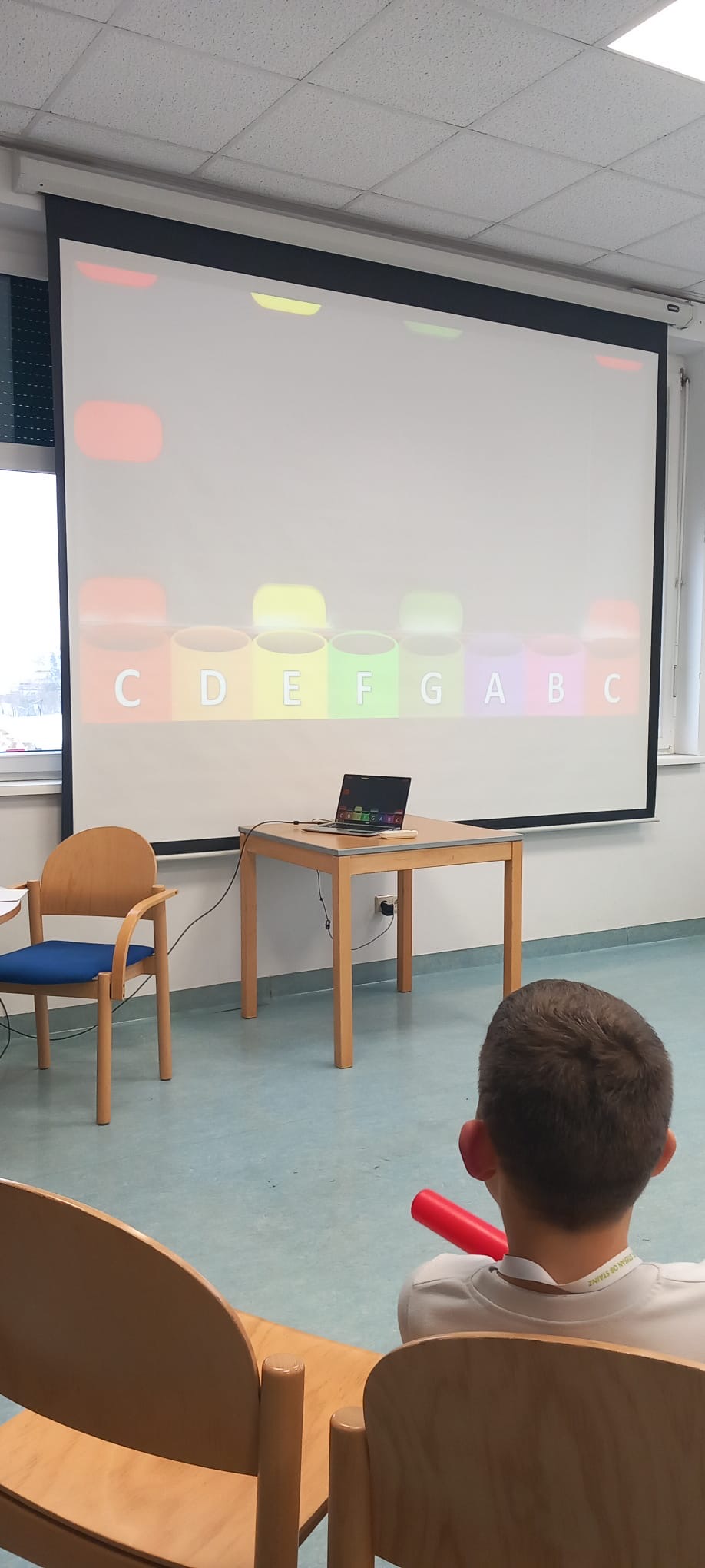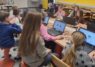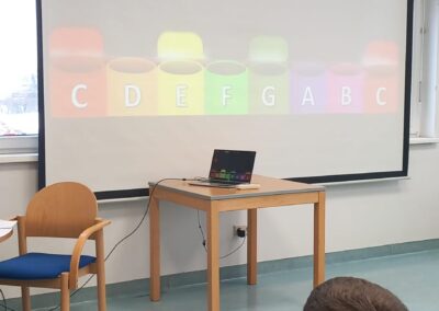 In Englisch zeigten die hochmotivierten Kinder großes Interesse und hatten sichtlich Spaß am Ausprobieren von IT-gestützten Aufgabenstellungen – und meisterten diese bereits bravourös. Zudem wurde den BesucherInnen das erfolgreiche und nachhaltige Unterrichtskonzept vorgestellt, dessen oberste Prämisse allen voran die Förderung kommunikativer Fähigkeiten darstellt, die vor dem Hintergrund einer kontinuierlichen Anwendung der Sprache ebenso durch ein hohes Maß an Spaß und Freude beim Erlernen ebenjener forciert werden. Eine Ode an die Freude gab es schließlich in der nächsten Station im Musiksaal. Dort spielten die Kids mit Boomwhackers bekannte Songs nach.