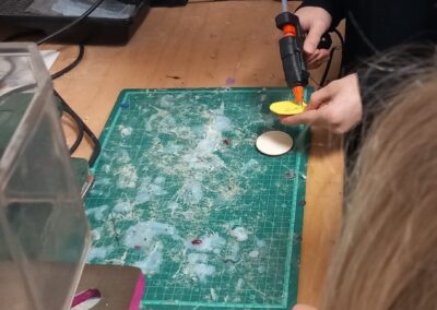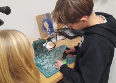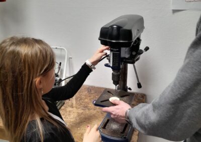 Bei der Besichtigung der Werkräume konnten die SchülerInnen kurzerhand auch das eine oder andere Werkzeug bedienen und einen Schlüsselanhänger bauen. Für Eindruck sorgte ebenfalls die hervorragend ausgestattete Schulküche. Dort durften alle BesucherInnen bei einer leckeren, selbstgemachten Jause zugreifen.