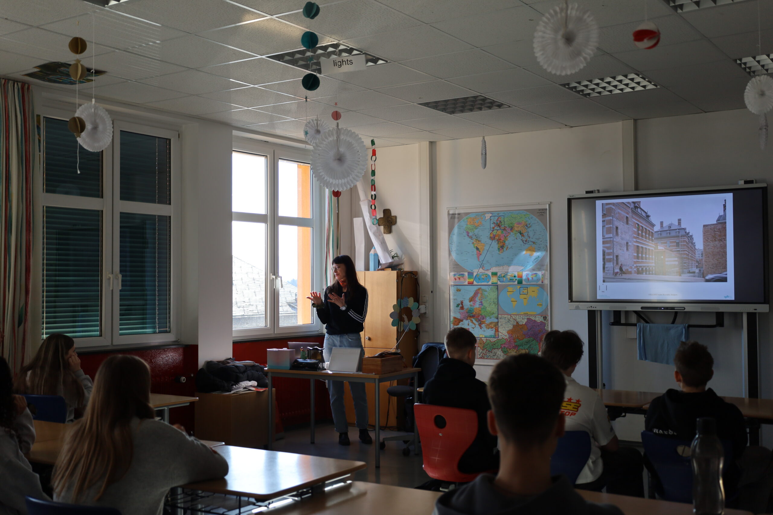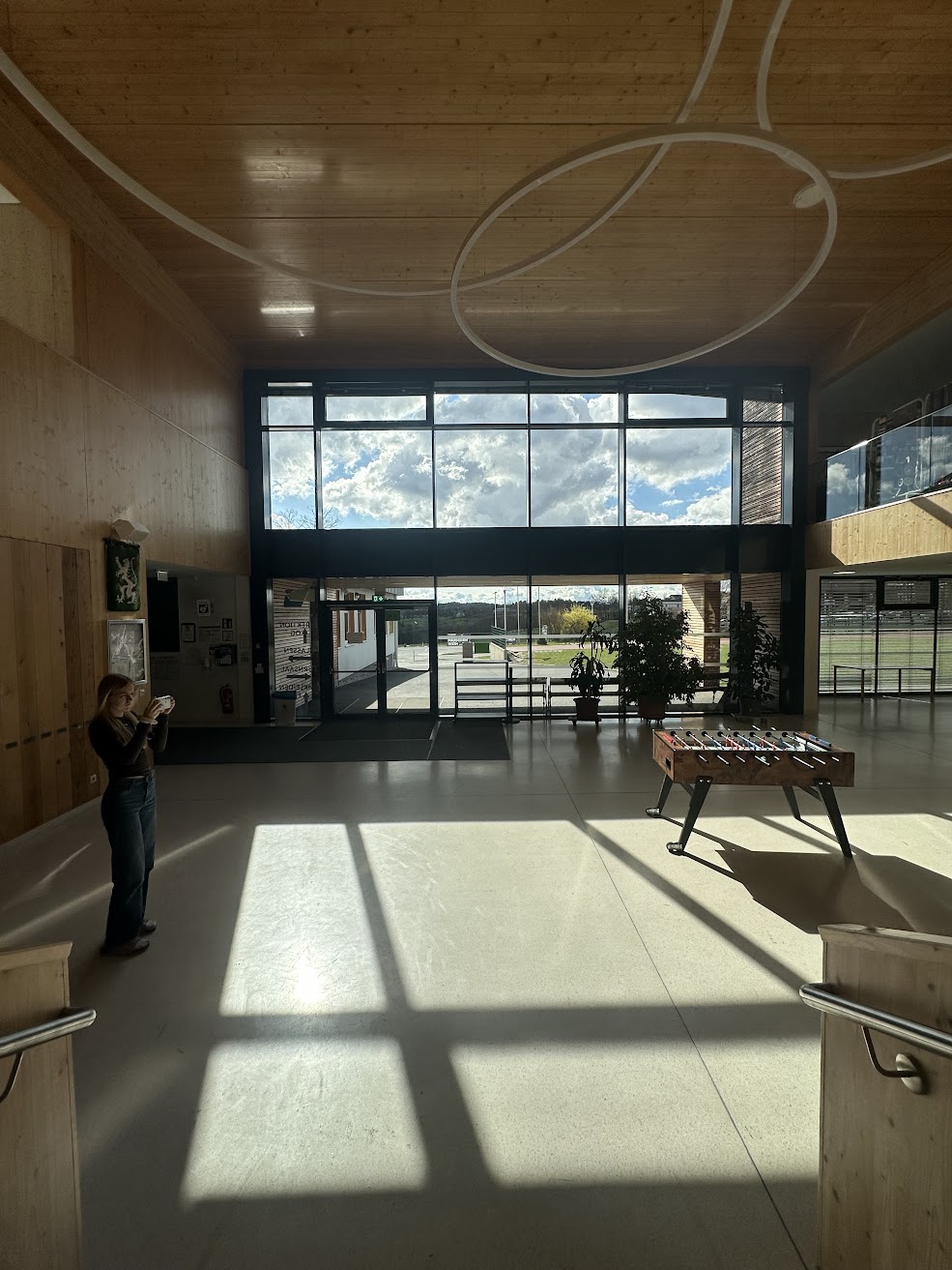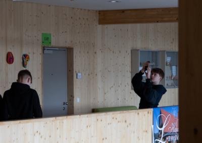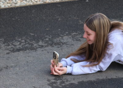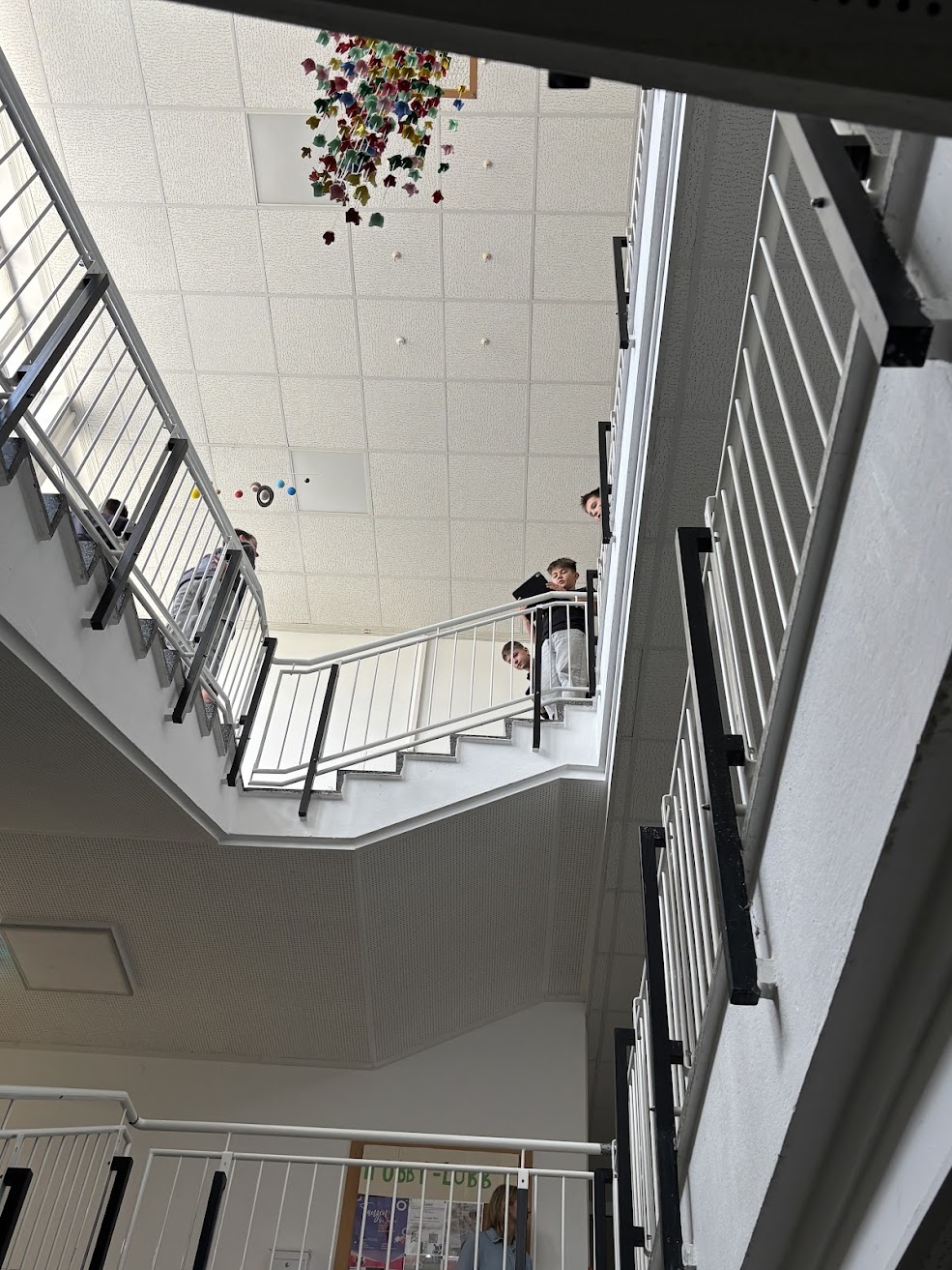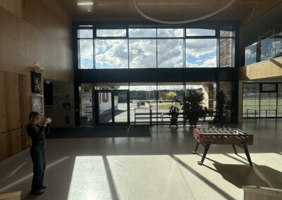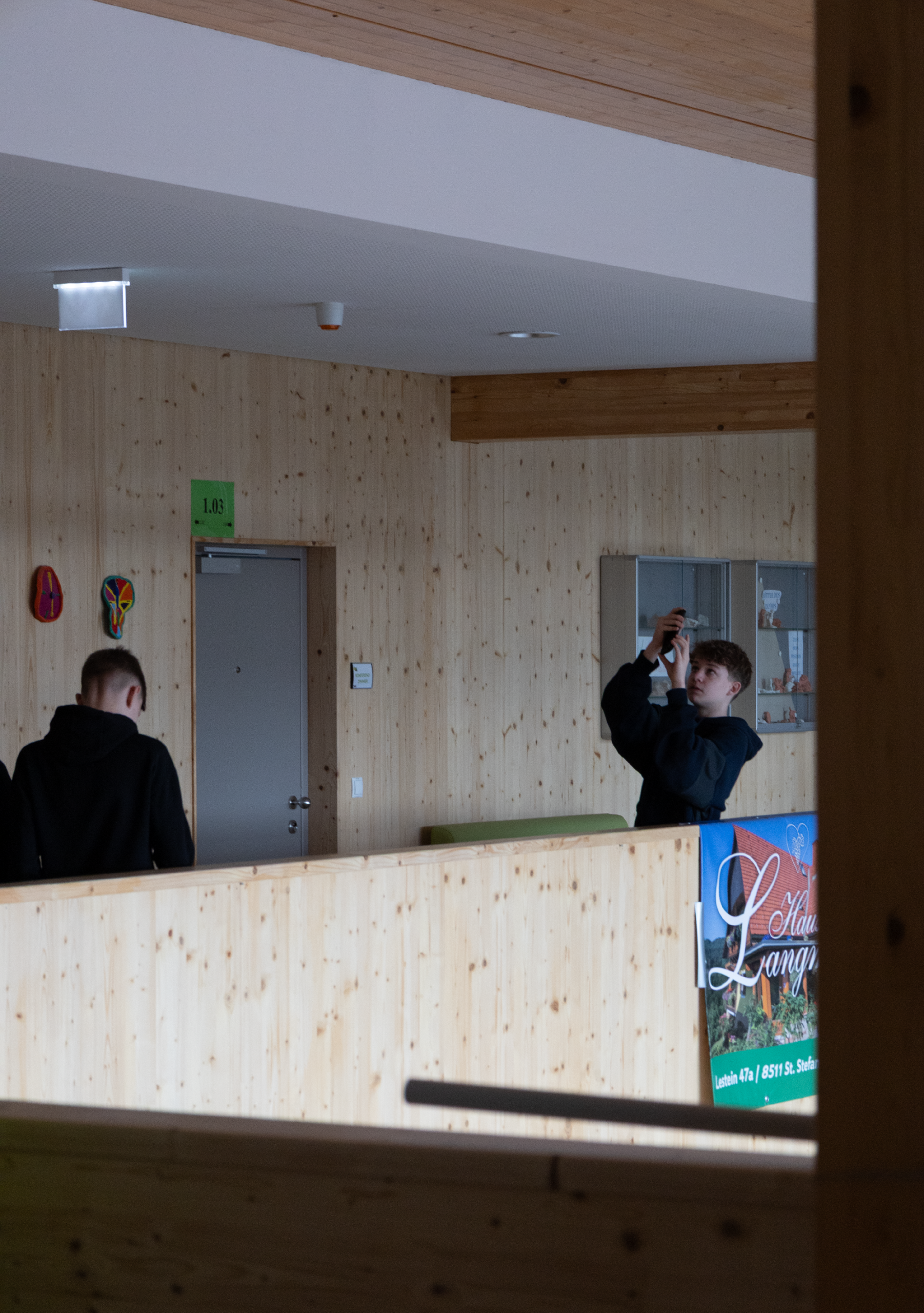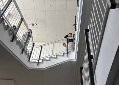 Im praktischen Teil wurde die eigene Schule zum Fotomotiv. Zuerst wurde die Schule von außen in Szene gesetzt, danach rückten plötzlich Ecken, Gänge und Details in den Fokus, an denen man sonst achtlos vorbeigeht. Aus ungewohnten Perspektiven, mit dem richtigen Blick für Licht und Schatten, entstanden dabei überraschend kreative Aufnahmen. Wer hätte gedacht, dass selbst ein ganz normaler Gang plötzlich fast wie ein Kunstwerk wirken kann?