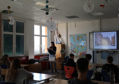 Wer glaubt, seine eigene Schule in- und auswendig zu kennen, hat sie wahrscheinlich noch nie durch eine Kamera betrachtet. Genau das machte die 4b aber. Unter der Anleitung von zwei Kursleitern vom Baukulturverein Steiermark und der TU Graz (Fakultät für Architektur sowie Institut für Gebäudelehre und Städtebau) tauchten die Schülerinnen und Schüler zunächst in die Welt der Architekturfotografie ein. Nach einem kurzen, aber spannenden Einstieg war schnell klar: Ein gutes Foto entsteht nicht zufällig – und schon gar nicht nur mit „einfach draufhalten“.