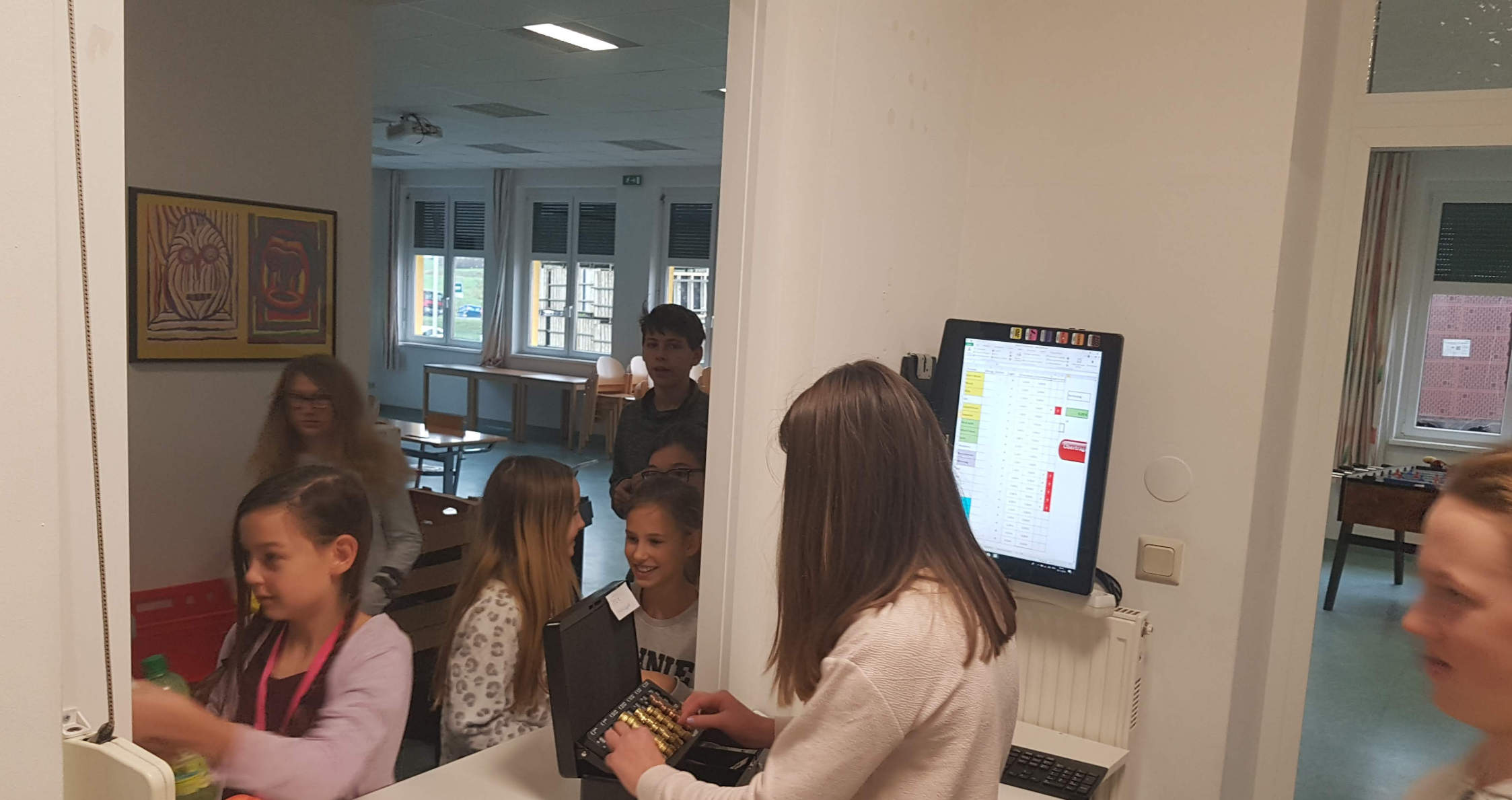 In zwei Pausen pro Vormittag verkaufen geschulte Mädchen und Burschen der 4. Klassen ihren Schulkollegen und Kolleginnen ein breites Snackangebot. Abgerechnet wird mit einem von Herrn Siener selbst konzipierten Computerprogramm, während neben gefüllten Weckerln auch stets die neuesten Schmankerln von Frau Wallner und ihrer motivierten Vital- Gruppe auf dem Menüplan stehen.